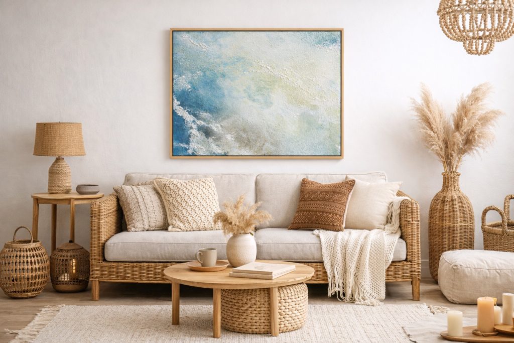 Diese Werke kombinieren lebendige Farben und interessante Strukturen, die Räume mit moderner Eleganz beleben.